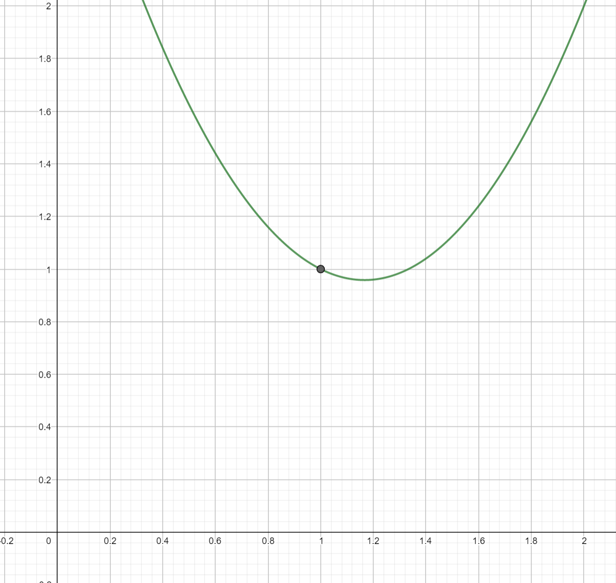 In particular, we know that any quadratic with a positive coefficient of \(x^2\) has a graph which is an upward-facing parabola. We conclude that \(f\) is concave-up near \(x=1\text{.}\)