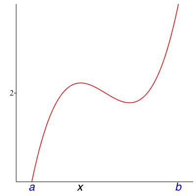 From Theorem 7.4, if \(f\) is defined and continuous on a closed interval \([a,b]\text{,}\) then indeed \(f\) has to have a minimum and a maximum somewhere on \([a,b]\text{.}\) We can use Theorem 7.5 to find where minima and maxima don’t occur: if \(a < c < b\) and \(f'(c) \neq 0\text{,}\) then definitely the minimum does not occur at \(c\text{.}\) Where can it be then? What’s left is the point \(a\text{,}\) the point \(b\text{,}\) every point where \(f'\) is zero, and every point where \(f'\) does not exist. An identical argument shows the same is true for the maximum. Summing up: