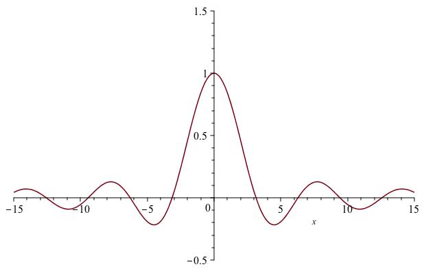 \operatorname{sinc} (x) := \begin{cases} \sin(x) / x & x \neq 0 \\ 1 & x=0 \end{cases}